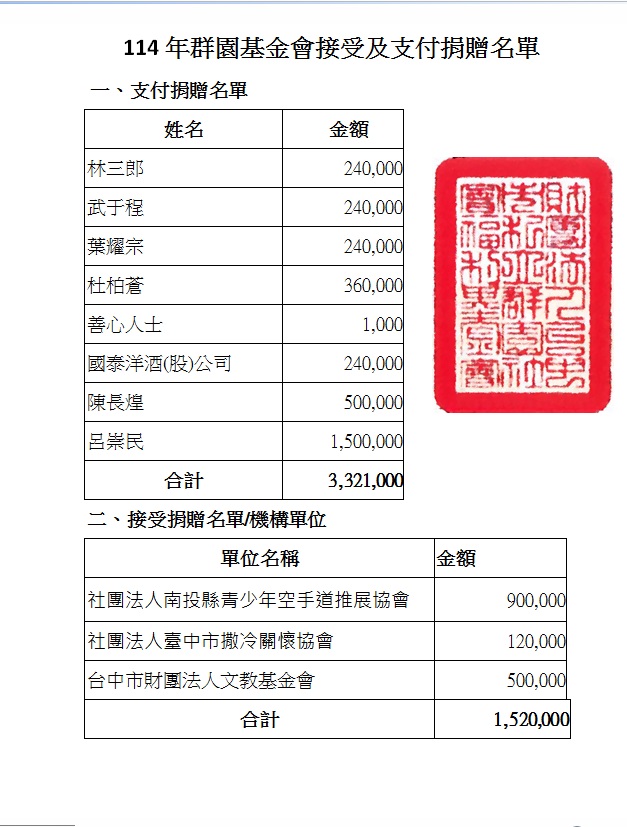 114年決算/接受及支付捐贈名單